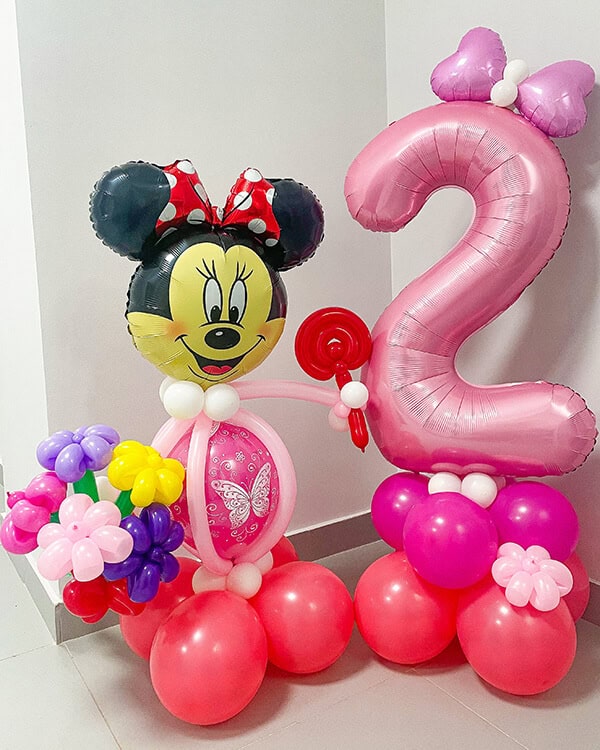 — Минни Маус с цветами из латексных шариков и Фольгированной головы Минни Маус
